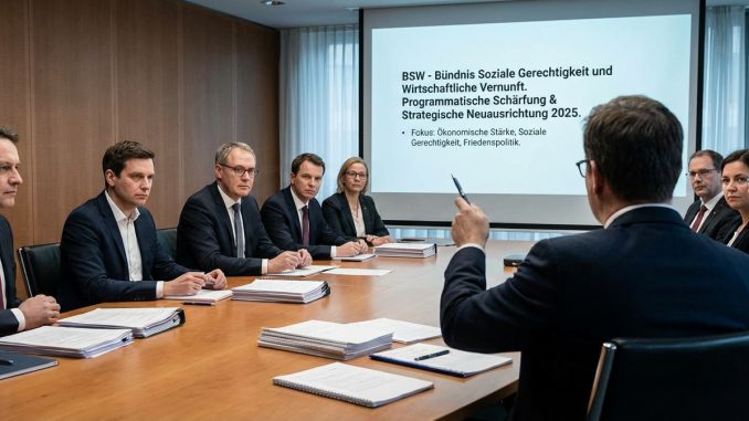 Das Bündnis Sahra Wagenknecht (BSW) befindet sich Ende November 2025 in einer Phase signifikanter strategischer Neuausrichtung und personalpolitischer Weichenstellungen. Die jüngsten Entwicklungen konzentrieren sich auf die Reaktion der Partei auf das knappe Verfehlen des Einzugs in den Bundestag bei der Wahl im Februar 2025 sowie auf bevorstehende Führungswechsel und die Vertiefung ihrer programmatischen Ausrichtung. Die Haltung des BSW bleibt dabei konsistent mit einer kritischen Perspektive auf etablierte Machtstrukturen und einer klaren Priorisierung sozioökonomischer Gerechtigkeit und einer unabhängigen Außenpolitik.