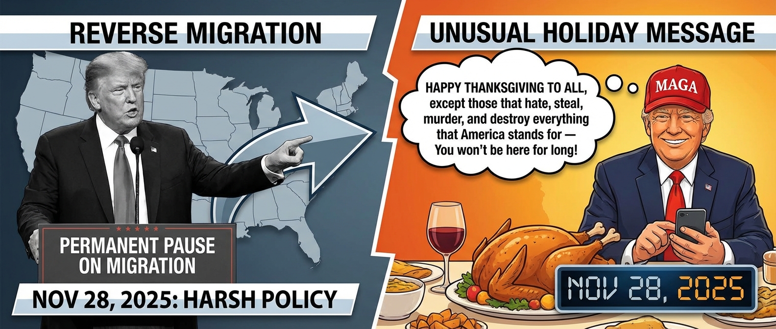 In einer bemerkenswerten Äußerung vom 28. November 2025 forderte US-Präsident Donald Trump eine „permanente Pause der Migration“ aus ärmeren Ländern und versprach, Millionen von Immigranten durch den Entzug ihres legalen Status aus den Vereinigten Staaten auszuweisen. Er machte Einwanderer für diverse gesellschaftliche Probleme, von Kriminalität bis Wohnungsnot, verantwortlich und forderte eine „REVERSE MIGRATION“. Seine harscheste Social-Media-Nachricht zur Einwanderung, seit er im Januar wieder ins Oval Office zurückgekehrt ist, erfolgte nach einem Schusswechsel in Washington D.C., bei dem ein afghanischer Staatsbürger als Verdächtiger identifiziert wurde und ein Mitglied der Nationalgarde ums Leben kam.